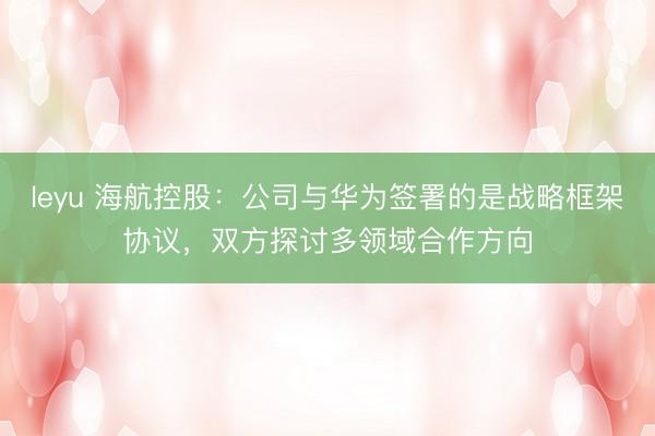 leyu 海航控股:公司与华为签署的是战略框架协议,双方探讨多领域合作方向