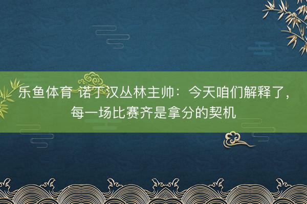 乐鱼体育 诺丁汉丛林主帅:今天咱们解释了,每一场比赛齐是拿分的契机