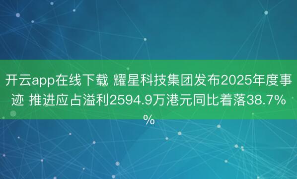 开云app在线下载 耀星科技集团发布2025年度事迹 推进应占溢利2594.9万港元同比着落38.7%