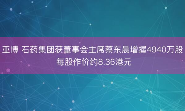 亚博 石药集团获董事会主席蔡东晨增握4940万股 每股作价约8.36港元