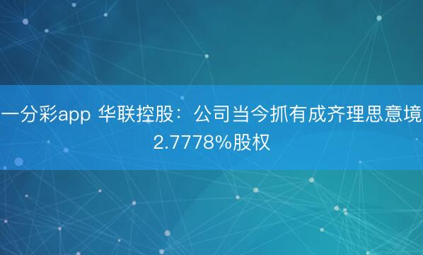 一分彩app 华联控股:公司当今抓有成齐理思意境2.7778%股权