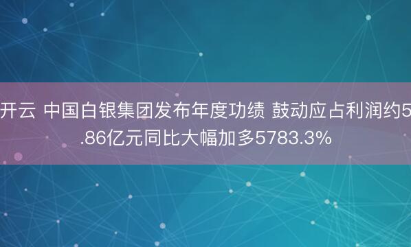 开云 中国白银集团发布年度功绩 鼓动应占利润约5.86亿元同比大幅加多5783.3%