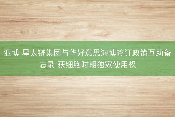 亚博 星太链集团与华好意思海博签订政策互助备忘录 获细胞时期独家使用权