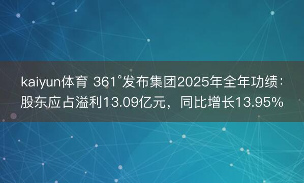 kaiyun体育 361°发布集团2025年全年功绩:股东应占溢利13.09亿元,同比增长13.95%