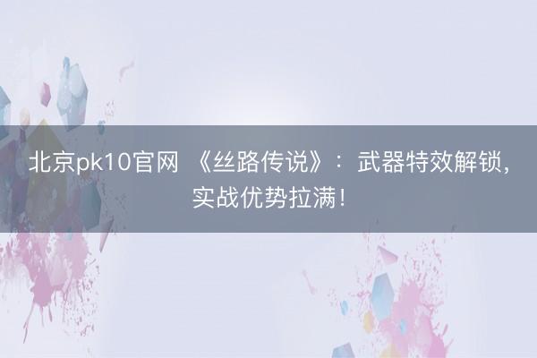 北京pk10官网 《丝路传说》:武器特效解锁,实战优势拉满!