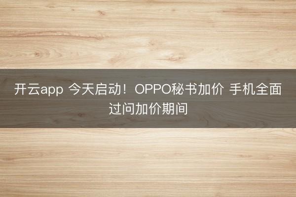 开云app 今天启动!OPPO秘书加价 手机全面过问加价期间
