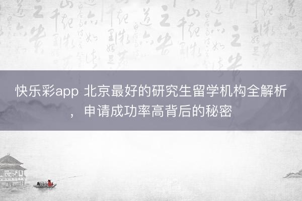 快乐彩app 北京最好的研究生留学机构全解析,申请成功率高背后的秘密