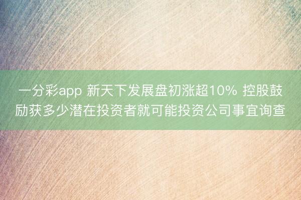 一分彩app 新天下发展盘初涨超10% 控股鼓励获多少潜在投资者就可能投资公司事宜询查