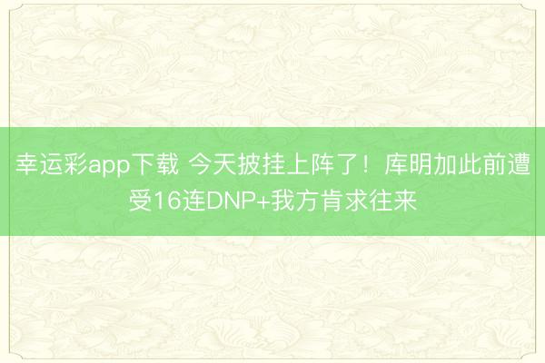 幸运彩app下载 今天披挂上阵了!库明加此前遭受16连DNP+我方肯求往来
