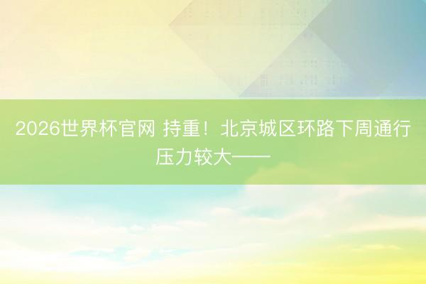 2026世界杯官网 持重!北京城区环路下周通行压力较大——