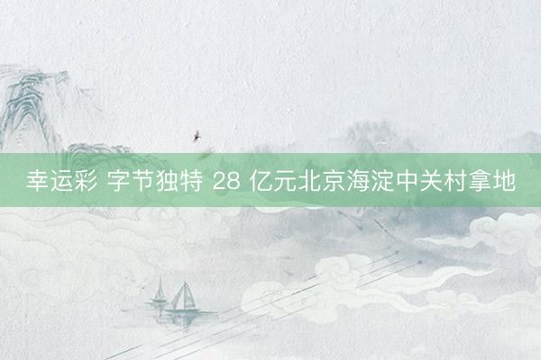 幸运彩 字节独特 28 亿元北京海淀中关村拿地