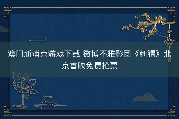 澳门新浦京游戏下载 微博不雅影团《刺猬》北京首映免费抢票