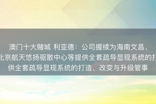 澳门十大赌城 利亚德:公司握续为海南文昌、酒泉卫星发命中心及北京航天悠扬驱散中心等提供全套疏导显现系统的打造、改变与升级管事