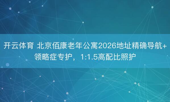 开云体育 北京佰康老年公寓2026地址精确导航+领略症专护,1:1.5高配比照护