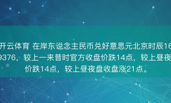 开云体育 在岸东说念主民币兑好意思元北京时辰16:30官方收报6.9376,较上一来昔时官方收盘价跌14点,较上昼夜盘收盘涨21点。