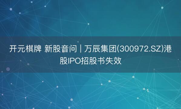 开元棋牌 新股音问 | 万辰集团(300972.SZ)港股IPO招股书失效