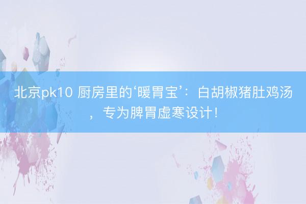 北京pk10 厨房里的‘暖胃宝’:白胡椒猪肚鸡汤,专为脾胃虚寒设计!