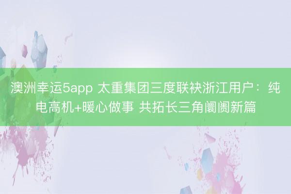 澳洲幸运5app 太重集团三度联袂浙江用户:纯电高机+暖心做事 共拓长三角阛阓新篇