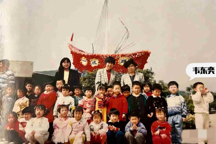 亚搏app登录 1996年, 韦东奕幼儿园照, 一张罕见留影, 那时就显得和别人不一样