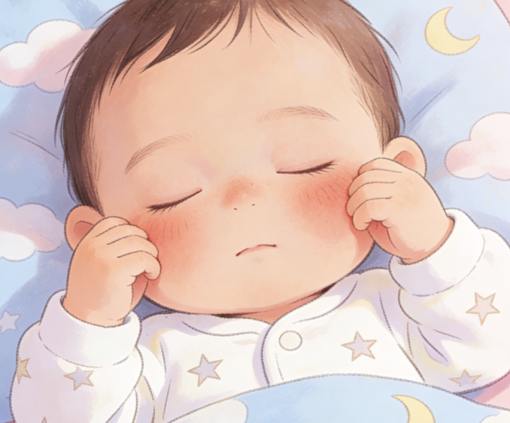 宝宝睡前频繁左右摇头,是很常见的一种表现,躺在床上时小脑袋轻轻左右摆动,力度不大也没有哭闹,这是宝宝在自主寻找舒服的睡姿和头部位置,通过轻微的动作舒缓神经,慢慢平复睡前的兴奋情绪,逐步进入放松的预备状态,只要没有频繁抓挠、哭闹不止、头皮发红的情况,就不是身体不适,只是自主入睡的小尝试。还有不少宝宝会反复揉眼睛、揉脸颊、抓耳朵、摸自己的小手小脚,这些自我安抚的小动作,是宝宝在模仿平时被家长安抚的方式,用自己熟悉的触感缓解睡前的不安,慢慢降低清醒度,这是他们独立学习自我安抚、为入睡做准备的关键行为,也是自主入睡能力萌芽的重要信号。