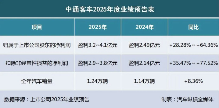 4 中通客车:2025年净利润预盈3.2-4.1亿元,增长28.28%-64.36%