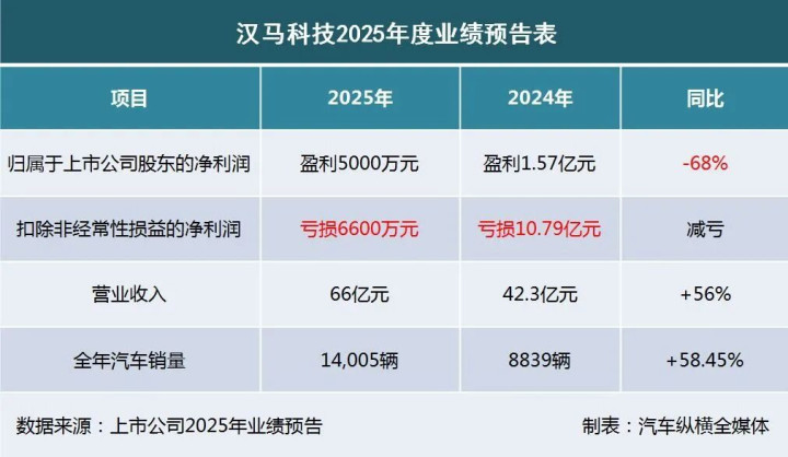5 汉马科技:2025年净利润预盈5000万元,下降68%