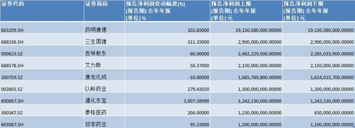 3家药企业绩预增超10倍,药明康德预计净利最高