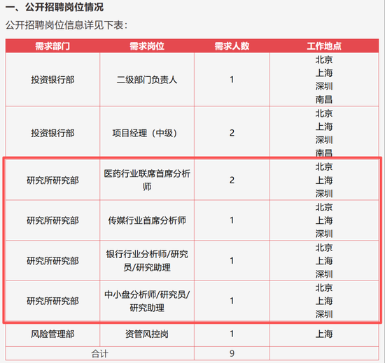 目前,为加强“新国盛证券”各项业务建设,这家券商仍在密集招兵买马,如研究所公开选聘两名医药首席分析师、一名传媒首席分析师等岗位。