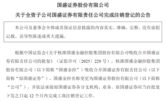 2026年1月30日,新国盛证券收到了江西省市场监督管理局出具的《注销证明》,原国盛证券已完成注销登记手续。