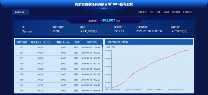 兖矿能源转让鑫泰煤炭股权的交易公告显示,这笔资产在网络竞价中获得了远超预期的市场反应。在1月30日组织的网络竞价中,鑫泰煤炭100%股权的最高报价竟然达到了30.5亿元。