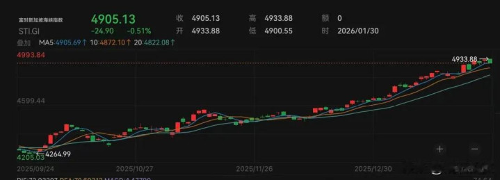 新加坡海峡时报指数报收4905.13点,周上涨+0.28%