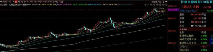 英国伦敦《金融时报》100指数报收于10223.54点,周上涨+0.79%