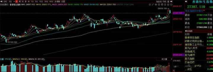 恒指本周先扬后抑,周中创四年半新高,周五大幅收跌 2.08%。截至收盘,恒生指数报27387.11点,全周累涨2.38%,恒生科技指数报5718.18点,周跌1.38%;国企指数报9317.09点,周涨1.71%。