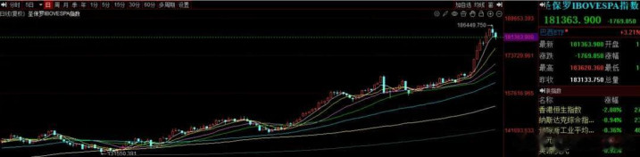 巴西圣保罗指数报收181363.90,周上涨+1.40%