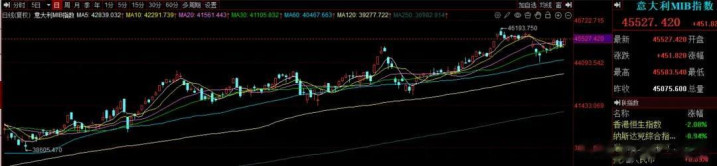 意大利MIB指数报收于45527.42点,周上涨+1.55%