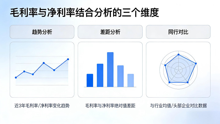 所以,单独看任何一个指标都只是片面的。我们要做到会像做CT扫描一样,把“毛利率”和“净利率”结合起来看,其实重点关注下面这三个维度: