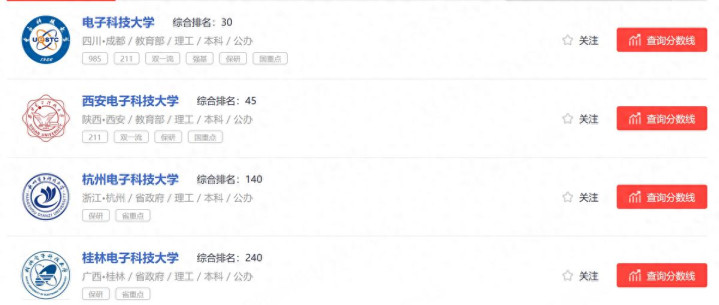 ·中低分段(省排名10%—20%):重点考虑重邮、桂电、西邮,行业特色鲜明,就业率高。
