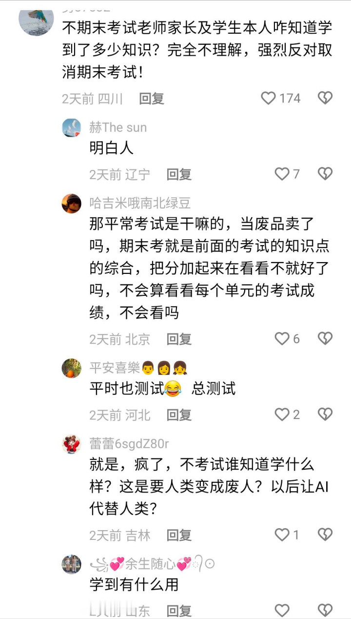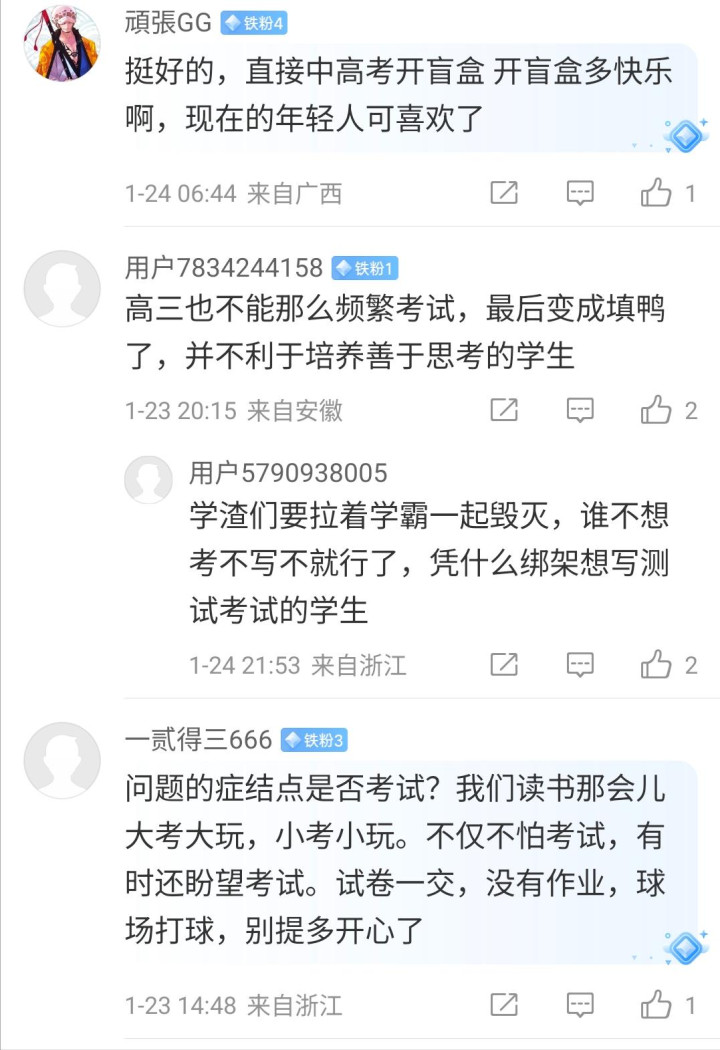 你以为取消了全市的联考、统考,学生们就欢呼雀跃吗?仍然保留校内的期末考试,学生们身上的压力依然存在啊!