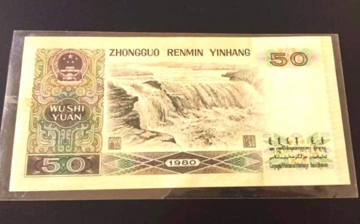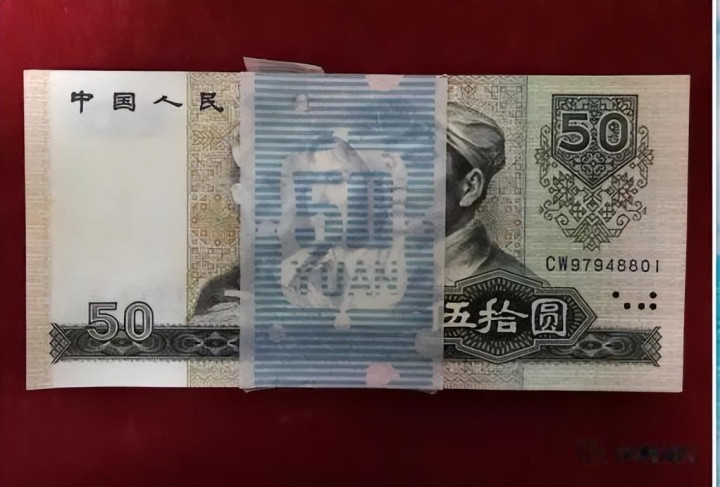 答案其实并不复杂。这几刀纸币,正是第四套人民币里的50元纸币,而且还是其中最值钱的一个年份——1980年50元。