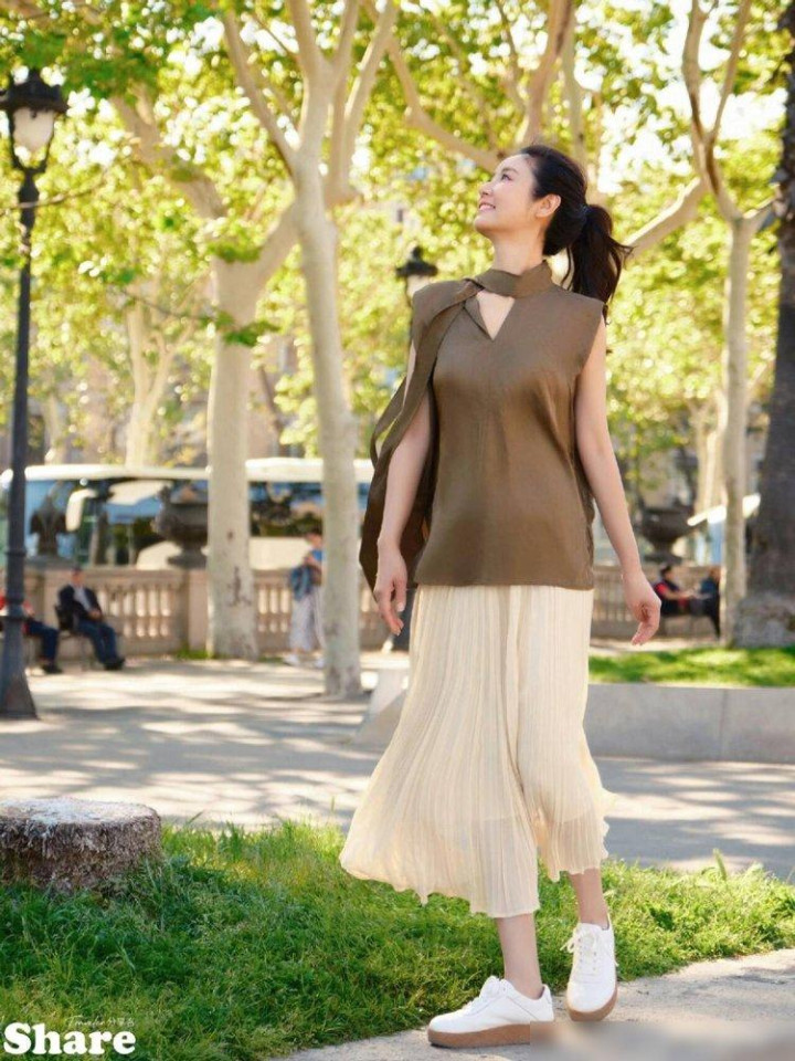 现在好多女明星的穿搭都太“舞台化”,要么blingbling得没法日常,要么宽松得像睡袍,可林心如这种“日常里藏小心机”的穿法,才是我们能学得来的。比如下周上班,你试试穿件卡其色条纹衬衫,配条A字超短裙,再搭双小皮鞋——既有上班的温柔,又有下班的活力,这不就是我们想要的“全能穿搭”吗?
