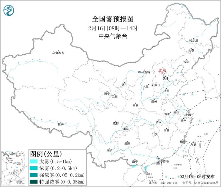 中央表象台2月16日06时不绝发布大雾黄色预警: