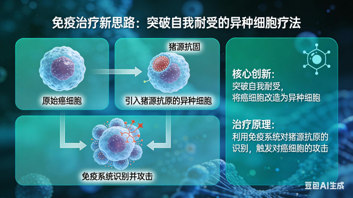 其核心思路是通过改造癌细胞表面抗原,使其被免疫系统识别为“异种细胞”(如猪细胞),从而触发强烈的免疫排斥反应来清除肿瘤。这项工作的潜在意义可以从以下几个层面理解: