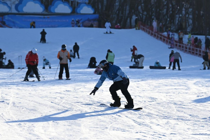 在沈阳东北亚国际滑雪场,游客尽享冰雪乐趣