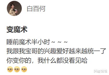 白百何在自己的个人社交账号上晒出了她与大儿子元宝的合照,她配文道:“睡前魔术半小时~~~我跟我宝哥的兴趣爱好越来越统一了。你变你的,我什么都没看见哈。”在照片中可以看到白百何穿着一件浅灰色的毛衣,她束着马尾辫,戴着白色的棒球帽,看起来十分休闲保暖。白百何对着镜头微笑摆pose拍照,同时,也秀出了她新做的美甲。而站在她身后的儿子元宝做了同款的美甲,跟妈妈白百何做出了同样的pose拍照,母子俩都笑得很开心。