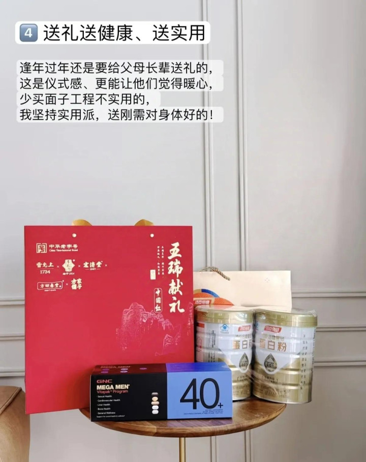 既然都是自己亲人,所以我的原则就是少买面子工程,少买不实用的,只送刚需,送对亲人身体好的。