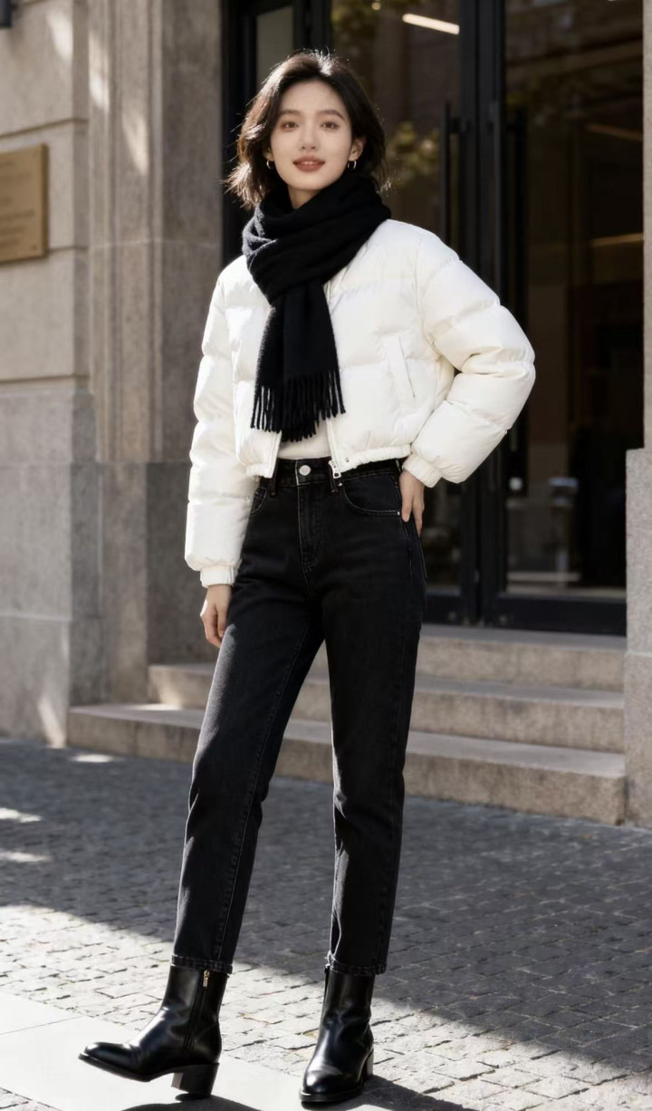 怕小白裤冬天显胖?搭短靴试试,利落感立马平衡。