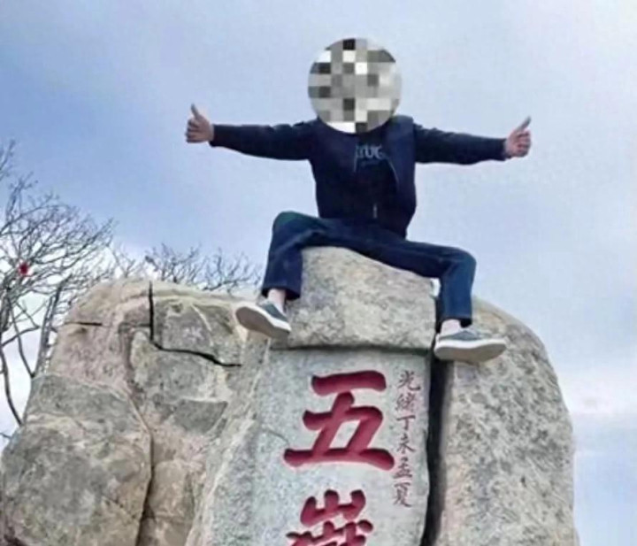 男人攀爬泰山“五岳独尊”石刻拍照,景区介入核查重办不好意思丽旅游